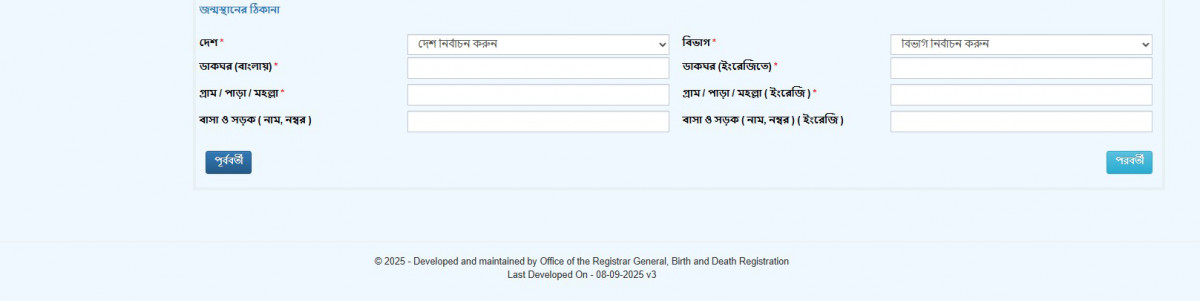 পরবর্তী ধাপে আপনার জন্ম নিবন্ধনের ঠিকানা দিবেন।