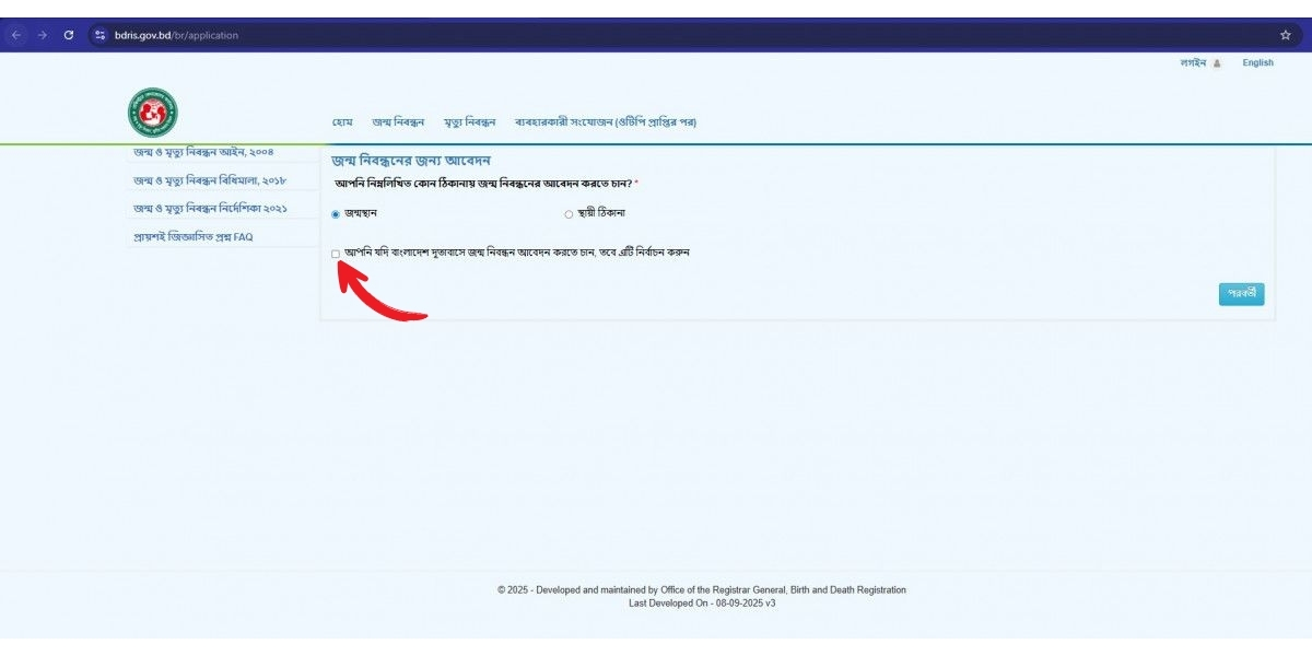 বিদেশ থেকে অনলাইনে জন্ম নিবন্ধনের জন্য