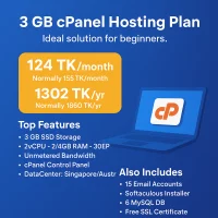 The lowest price of 3gb hosting with cpanel in Bangladesh is Tk 124 only. Buy at low price in Bdstall. There is currently 1 seller.
