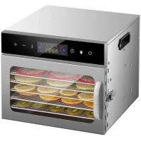 This dehydrator has six trays that are made of durable 201 stainless steel body material and 304 stainless steel grid material, so it ensures long-lasting use. It can be used to make fruits, vegetables, herbs, and meats with ease. Also, it has been designed with smart touch controls that allow you to set the temperature and time automatically. Moreover, its 400W outpower ensures quick food processing.