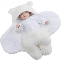 This baby blanket is designed for newborns to protect them from the cold. This blanket is made of velvet and cotton wool, with a size of 58 x 29cm and a weight of 180g. It is suitable for children aged 0 to 12 months. It is suitable for babies diapers. The blanket does not cause tension when spreading arms and legs, making it a convenient and effective solution for newborn protection.