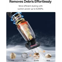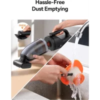 The Baseus AP02 Wireless Car Vacuum Cleaner includes a 160W motor, capable of producing an incredible 6000 Pa of suction. The motor utilizes a 10000 mAh battery, allowing you a total of 25 minutes of vacuuming. You can charge the vacuum using type-C with an input power of 5V/2A, which takes about 5.5 hours. The vacuum has a 1000 ml larger capacity for the dust box, so you can clean without frequently needing to empty it. The silicone roller brush is designed to stop hair from tangling, leading to smooth and consistent performance. Noise levels are below 72 dB, making it a pleasant and quiet vacuum.
