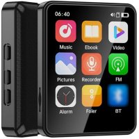 This D8 supports MP3 and MP4 music play, Bluetooth, recording, FM radio, alarm clock, video, photo, and e-book. This MP3 player comes with a 1.8-inch TFT display with a resolution of 128 x 160 pixels. Its USB 2.0 standard interface supports radio function, image preview function, and JPG, GIF format image e-book function. It also has a 450mAh battery that will last for 10 hours of music playback in headphone screen-saver mode.