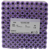 The EDTA K2 tube is a medical device that is used for the safe and effective collection of venous blood specimens. It is made from PET plastic, which makes it extremely strong and almost unbreakable, and the clear PET tube is as transparent as glass, allowing easy viewing of the specimen. The K2EDTA anticoagulant is coated on the inner wall of the tube, which acts as a clotting agent in the blood specimen by binding to calcium ions in the blood. The EDTA K2 tube is excellent for hematology applications, and it improves safety and hygiene for blood collection and specimen accuracy.