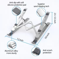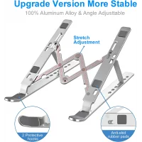 This Foldable Laptop Stand is made from high-quality aluminum alloy for toughness. The foldable and portable design makes it very easy to carry and store. Its adjustable angles ensure neck and eye comfort. This laptop stand also has anti-slip silicone pads to keep your device from slipping. Heat dissipation design helps laptops stay cool. This product is compatible with most 10–17 inch laptops and tablets. This stand is the perfect product for office, home, study, gaming, and content creation.