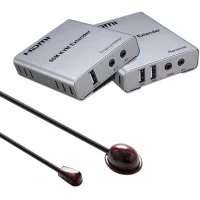 This HDMI 60M KVM Extender transmitter & receiver supports IR remote control, low temperature, and high safety, USB mouse and keyboard extension. Also, it comes with 1080p at 60 Hz highest video resolution. It provides a 150 MHz maximum bandwidth where a 45 Gbps maximum baud rate. Moreover, it has 3.5 mm left and right audio outputs.