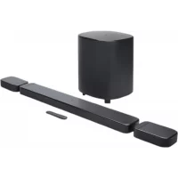 This JBL BAR 800MK2 is a 7.1 Channel Soundbar that comes with 780W Dolby Atmos detachable wireless surround speakers. It includes a large woofer, two small speakers & a long soundbar that has soundbar supports Bluetooth and Wi-Fi connectivity to wirelessly connect with smart devices to enjoy music streaming from different platforms.