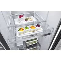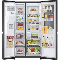 The LG GS-X6354MC 674L InstaView Side-by-Side Refrigerator combines premium design and smart performance. It features a linear compressor for energy-efficient cooling with 624 kWh annual consumption and a 2-tick NEA rating. This 674L InstaView Side-by-Side Refrigerator is equipped with many features, such as Hygiene Fresh+, FRESHBalancer, and Multi Air Flow for longer freshness. This LG GS-X6354MC refrigerator also includes ThinQ Wi-Fi smart control, UV Nano, Smart Diagnosis, and a non-plumbing water dispenser.