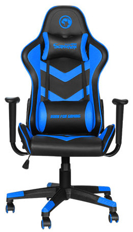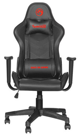 This gaming chair has ergonomic body-hug high back, removable headrest pillow and lumbar cushion which make it the ideal seat to work, study and play computer games. This model made of premium PU leather material, 360-degree rotation and multi-directional wheel moves easily on the floor. Green, black, blue and red colors are available.