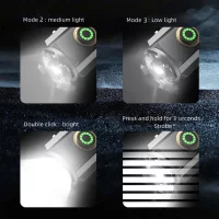 This torch has five light modes: bright, medium, low, strobe and burst. Press and hold the button for two seconds to activate strobe mode. Double-click the button twice to activate the super-bright mode, which is extremely bright.