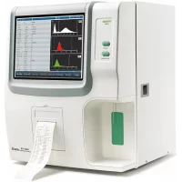 This Rayto RT-7600 is an automatic blood analyser that performs complete blood counts (CBC) by counting and categorising WBC, RBC, and platelets through the electrical resistance principle. It differentiates white blood cells into three types, provides histograms for WBC, RBC, and platelets, and can process 60 samples per hour. With an easy-to-use touch screen, it counts both whole and pre-diluted blood, and can print results either directly from the device or via an external printer.