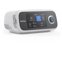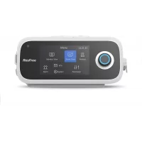 The ResFree R20A is a sleep apnea treatment machine with CPAP and APAP functionality. Its built-in humidifier has anti-backflow capabilities. This machine operates under 30 dBA of noise. The machine can be adjusted for pressure, ramp, and humidity settings. The machine features SD card storage and Wi-Fi for tracking therapy results. It is very lightweight, and with its ergonomic design, it is easy to use at nighttime. The machine can also automatically adjust for leaks and altitude to provide consistent therapy.