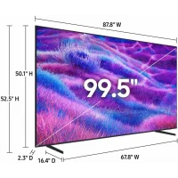This Samsung QN80F Smart TV arrives with a 100‑inch Neo QLED Mini‑LED display delivering 4K resolution with HDR and ultra‑fine contrast. It features the NQ4 AI Gen2 processor & Quantum Matrix Technology Core, which together provide precise Mini‑LED lighting control, extra brightness, and AI‑driven 4K upscaling using twenty neural networks. Also, the Motion Xcelerator delivers up to 144 Hz refresh with VRR and ALLM support for smooth gaming and sports performance, while the built‑in 30‑watt four‑channel speaker system for full‑range sound with object‑tracking. Moreover, Wi‑Fi connectivity enables streaming and screen mirroring through Samsung’s One UI Tizen OS.