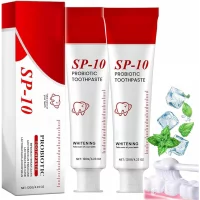 SP-10 Probiotic Whitening Toothpaste removes stains and makes teeth bright and shiny. The probiotics in it maintain the balance of bacteria in the mouth, which results in healthy gums and fresh breath. This toothpaste can be used daily and does not contain any harmful chemicals for teeth.