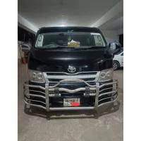 The Toyota Hiace Super GL is a 2010 model private car, registered in 2015. It has an MPV body style, a black body color, and an automatic transmission. This car also features an engine capacity of 2000 CC and an Octane + CNG fuel system. This vehicle also has crystal headlamps, fog lamps, a digital meter, original headlights, an ABS brake system.