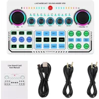 This X50 is a professional recording live sound card. It features a Smart Dodge, Magic Tones, fine-tuning fun tones, multiple sound effects, and controls for volume, reverb, and more. It functions as a USB sound card and audio mixer interface, has a built-in battery for portable use, and has a signal-to-noise ratio of ≥60 dB.